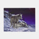 Gray Wolves in Winter Snow at Night Doormat