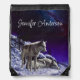Gray Wolves in Winter Snow at Night Drawstring Bag