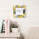 Gray Yellow Black Abstract Brushstrokes Square Wall Clock