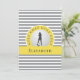 This custom design features a female golfer silhouette set on a realistic golf ball image. The golf ball is placed on a yellow circle that is bordered with curved text "GOLF GOLF GOLF GOLF" in gray font. A yellow band holds a template for a monogrammed name or custom text. The background is a trendy ultimate gray and white stripe pattern. Blank on back, this card is perfect for your personal handwritten note.