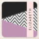 Gray Zigzag, Gray Chevron, Purple, Your Name Square Paper Coaster