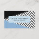 Elegant, stylish and sophisticated business cards with zigzag (chevron) pattern in gray and white color with blue and black patches of color. Modern and trendy design, perfect for zigzag lovers.