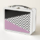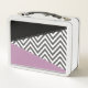 Gray Zigzag, Gray Chevron, Zigzag Pattern, Purple Metal Lunch Box