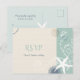 Chic starfish and beach sand in white + brown sea shell + dusky blue solar shapes + ivory & grayed jade background designed on custom Wedding RSVP Postcards. Customize the fun & whimsical wedding paperie with your own text for a CHIC BEACH WEDDING | TRENDY SEASIDE WEDDING or FUN SUMMER DESTINATION WEDDING. ((You can find the matching wedding essentials & favors in this store, Bridal Heaven. Contact ujean4791@gmail.com for custom work and/or coordinating wedding stationery.))