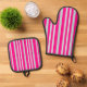 Grayish Gray Green Line Stripes On Pretty In Pink Oven Mitt & Pot Holder Set