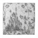 Grayscale Fairytale Castle with Ornate Vine Border Ceramic Tile