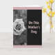 This card features a split layout that pairs a quiet floral image with a simple message of care ❤️. On the left side, a single flower in grayscale fills the space, its layered petals curling outward from a tightly closed center like a gentle embrace. Soft, misty lighting and a blurred background give the bloom a calm, intimate presence, as if it’s being admired up close by someone who truly cares. On the right side, a solid black panel creates strong contrast, letting the words “On This Mother’s Day” stand out clearly. The text sits centered on the dark area in a warm pink, with smooth, rounded lettering that feels tender and friendly 🌼. A thin pink border runs continuously around the entire front, tying the two halves together and echoing the color of the message. The grayscale flower shows fine petal ridges and subtle shading, while the right panel remains an even, matte black field framed by that narrow pink line.