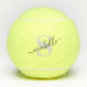 Scripted elegant trendy personalized name tennis balls with a classic large serif grayscale initial background.
