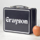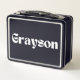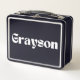 The name "Grayson" prominently displayed on the front in a contemporary font adds a layer of personalization that transforms this lunchbox into more than just a functional item. It’s a stylish accessory that complements any routine, whether Grayson is heading to class, the office, or an outdoor adventure. The personalized touch makes it easily identifiable, eliminating mix-ups and giving it a distinct and meaningful charm.