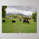 A herd of black cattle graze the bright green grass on this lovely ranch outside of Elko, Nevada. Nevada's Ruby Mountain are in the background and the sky is filled with clouds. This digital painting gives an artistic look to the original photograph.