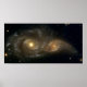 In the direction of the constellation Canis Major, two spiral galaxies pass by each other like majestic ships in the night. The near-collision has been caught in images taken by NASA's Hubble Space Telescope and its Wide Field Planetary Camera 2. The larger and more massive galaxy is cataloged as NGC 2207 (on the left in the Hubble Heritage image), and the smaller one on the right is IC 2163. Strong tidal forces from NGC 2207 have distorted the shape of IC 2163, flinging out stars and gas into long streamers stretching out a hundred thousand light-years toward the right-hand edge of the image. Computer simulations, carried out by a team led by Bruce and Debra Elmegreen, demonstrate the leisurely timescale over which galactic collisions occur. In addition to the Hubble images, measurements made with the National Science Foundation's Very Large Array Radio Telescope in New Mexico reveal the motions of the galaxies and aid the reconstruction of the collision. The calculations indicate that IC 2163 is swinging past NGC 2207 in a counterclockwise direction, having made its closest approach 40 million years ago. However, IC 2163 does not have sufficient energy to escape from the gravitational pull of NGC 2207, and is destined to be pulled back and swing past the larger galaxy again in the future. The high resolution of the Hubble telescope image reveals dust lanes in the spiral arms of NGC 2207, clearly silhouetted against IC 2163, which is in the background. Hubble also reveals a series of parallel dust filaments extending like fine brush strokes along the tidally stretched material on the right-hand side. The large concentrations of gas and dust in both galaxies may well erupt into regions of active star formation in the near future. Trapped in their mutual orbit around each other, these two galaxies will continue to distort and disrupt each other. Eventually, billions of years from now, they will merge into a single, more massive galaxy. It is believed that many present-day galaxies, including the Milky Way, were assembled from a similar process of coalescence of smaller galaxies occurring over billions of years. This image was created from 3 separate pointings of Hubble. The Wide Field Planetary Camera 2 data sets were obtained by Debra Meloy Elmegreen (Vassar College), Bruce G. Elmegreen (IBM Research Division), Michele Kaufman (Ohio State U.), Elias Brinks (Universidad de Guanajuato, Mexico), Curt Struck (Iowa State University), Magnus Thomasson (Onsala Space Obs., Sweden), Maria Sundin (Goteborg University, Sweden), and Mario Klaric (Columbia, South Carolina).
