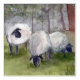 A print of a watercolor painting of sheep grazing in a pasture by artist D Carrasco