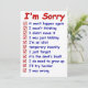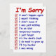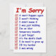 OK, so you did something wrong or said something stupid and you need to apologize. You have to say you're sorry and sometimes that's tough. We make it easier. This card has 10 great excuses and promises that guarantees forgiveness…and you may even get a smile!