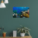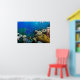 A beautiful poster featuring colorful schools of tropical fish and a huge variety of soft and hard corals. The photo was taken at a site called Steve's Bommie on Australia's Great Barrier Reef.