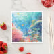 Watercolor artwork of the Great Barrier Reef with fish, coral, and seaweed in aqua-blue ocean water.