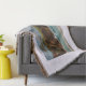 A quality printed throw has its advantages. This is a much finer weave throw than its loopier cousins, and though lighter, it is worth the investment for custom room accessorizing. The back is much prettier than the typical brown, and the fringe on the long sides very vivid, the selvage nicely done. Before photographing, I washed the throw in cold water, delicate, with a thicker woven throw the same size. On tumble dry low, this throw was dry in half the time as the other. This is a very practical quality if you use throws for furniture covers or to wrap up in frequently. The sleekness of the fabric makes it a great layer for accenting or protecting without the feeling of sitting on too much stuff. Perfect for napping or when you feel a light chill coming on. The color printing is beautiful and on this fabric, matched the design and color of my Photoshop image. This is an advantage for blending room fabrics and colors. The fringe on the short sides prints the colors from the design image and therefore varies from the side fringe. I streaked a white fractal line through the plaid pattern to give the illusion of weaving. This printed as crisp as an illusory thread, and put some white in the short side fringe, showing another advantage of print vs loomed- for artistic purposes, line lines, detail, and color integrity can be planned and preserved. My loomed throws have color limitations and more of a needlepoint texture. Print throws reproduce an exact image. The throw felt a little stiff straight out of the package, but this went away in the first delicate wash. Of course I searched the wash water for ink or bleeding and there was none.