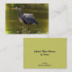 This artist trading card features the Great Blue Heron, a large wading bird in the heron family Ardeidae, common near the shores of open water and in wetlands. He is the largest North American heron. Notable features include slaty flight feathers, red-brown thighs, and a paired red-brown and black stripe up the flanks; the neck is rusty-gray, with black and white streaking down the front; the head is paler, with a nearly white face, and a pair of black plumes running from just above the eye to the back of the head. The feathers on the lower neck are long and plume-like. Because this is the breeding season, he also has plumes on the lower back and an orange bill. He is standing in shallow water and his feathers are backlit by the luminous sunlight.