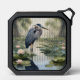 This image is a painterly representation of a Great Blue Heron wading in a pond full of water lilies surrounded by willow trees. Great Blue Heron is an AI generated wildlife image of one of many species of wading birds.