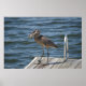 Lunch! Great Blue Heron stands on deck with fish in beak after a successful hunting expedition.