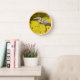 Personalize (add your text or change the image) on photography of a Great Blue Heron, standing in the pond, designed on any Zazzle Wall Clocks on a green background (marsh view). This clock design with hour & minute dials. Photography of a Florida wild wading bird. Large birds. Wildlife. Wildlife of Florida. Florida wetlands. Florida birds.