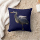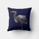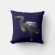 This throw pillow features the Great Blue Heron, a large wading bird in the heron family Ardeidae, common near the shores of open water and in wetlands. He is the largest North American heron. Notable features include slaty flight feathers, red-brown thighs, and a paired red-brown and black stripe up the flanks; the neck is rusty-gray, with black and white streaking down the front; the head is paler, with a nearly white face, and a pair of black plumes running from just above the eye to the back of the head. The feathers on the lower neck are long and plume-like. Because this is the breeding season, he also has plumes on the lower back and an orange bill. His feathers are backlit by the luminous sunlight.