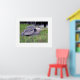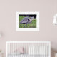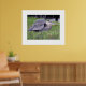 In the original photograph by ZoeSPEAK in this print, the Great Blue Heron, standing along the bank of a canal, sees something farther up the waterway, a possible threat to his territory. He puffs up the bluish gray feathers on his back to make himself look bigger. With his long, thin legs spread as he looks straight ahead, the bird is ready to defend his space in the green grass. Dark, rippled reflections on the water form the background of the scene. There is a wide white border around the photograph, with title and photographer's credit in small text under the photo.
