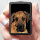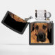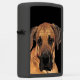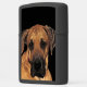 Great Danes are domestic dogs also known as the Gentle Giant or German Mastiff. The wonderful pet on this Zippo Lighter is a gentle baby with faun colored yellow, gold and brown fur, black nose, floppy ears and sweet, soulful eyes. He is one of the world's tallest dog breeds.