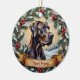A beautiful, ultra-detailed Christmas design featuring a realistic portrait of the breed centered within a soft, festive winter frame. This elegant design includes pine branches, red berries, and snowflakes against a snowy backdrop, illuminated by warm holiday lighting. The balanced, round composition includes clear space below the dog for customization.