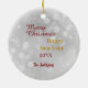 On the front of this Holiday ornament is an image of a Great Dane Dog wearing a Santa hat and wrapped in colored Christmas lights. The image is set against a festive silver bokeh background. The back of the ornament has the same background with custom text that currently says "Merry Christmas Happy New Year", the date and your signature. Cute for anyone, but especially for Great Dane fans.