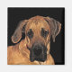 Great Danes are domestic dogs also known as the Gentle Giant or German Mastiff. The wonderful pet on this magnet is a gentle baby with faun colored yellow, gold and brown fur, black nose, floppy ears and sweet, soulful eyes. He is one of the world's tallest dog breeds.