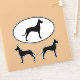 Oval and die cut sticker set. These durable dog silhouette decals are waterproof and scratch resistant. Stick these Great Dane stickers to your laptop, phone, notebook, water bottle, helmet, luggage, or even your car. Visit Jenn’s Doodle World for even more dog breed vinyl decals and Great Dane lover’s gifts.
