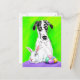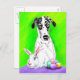 Great Dane Easter - Harlequin Great Dane is spooked by the Easter Bunny... Rabbits? BAHHH! The candy, the eggs, they're perfect... but the RABBITS?! Who needs 'em? Comical artwork for Easter or any day.