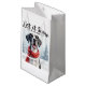 So very happy with the quality of this bag! The thickness of the paper along with the glossy finish I just love it! Can’t wait to give our pup his gifts in this awesome custom gift bag! The printing came out amazing! The black crisp clear printing on the white bag looks amazing! Very pleased with this purchase!