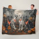 Unleash the spooky spirit with this eerie Halloween design featuring a pack of dogs under a dark, moonlit sky, surrounded by flying bats and glowing pumpkins. Perfect for those who love a touch of frightful fun with their furry friends!