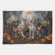 Unleash the spooky spirit with this eerie Halloween design featuring a pack of dogs under a dark, moonlit sky, surrounded by flying bats and glowing pumpkins. Perfect for those who love a touch of frightful fun with their furry friends!