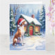 Great Dane Snowy Cabin Santa Hat Christmas Art Card