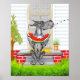 Great Dane sitting on the front porch eating watermelon and spitting the seeds. Comical dog art work inspired by my own great danes who would NOT eat the seeds - THEY SPIT!