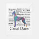 This colorful Great Dane fleece blanket, featuring the traits and personality of the breed, is a great gift for any Great Dane lover.