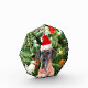 A cute Great Dane dog wearing Red Santa Hat and posing in front of nicely decorated Christmas Tree, with gift boxes snow man, teddy bear, Christmas ornaments. A perfect gift on this Christmas!