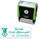 This inspirational rubber stamp design features the positive feedback message "Great First Attempt!" and a custom educator's name. It also has a decorative award ribbon icon. It could be used by a teacher, educator, instructor, or tutor when marking assignments, to acknowledge that a student has done well.