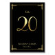 Great Gatsby Art Deco wedding table number cards with golden number 20 and changeable text, where you can add your names and wedding date, printed on black background