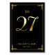 Great Gatsby Art Deco wedding table number cards with golden number 27 and changeable text, where you can add your names and wedding date, printed on black background