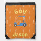 A great Golf Drawstring Backpack with a large Golf Cart graphic in the centre with small semi transparent golf players in two poses on a background colour of your own choice. The words can be changed to your favourite team, school, college or anything you can think of. Ideal for your games kit.