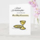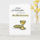 Let your great granddaughter know she is loved as you send congratulations and blessings on her First Holy Communion card. This white card has a gold chalice and paten.