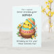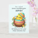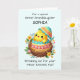 Celebrate your great-granddaughter’s very first Easter with this charming card featuring a cute baby chick hatching from an egg, surrounded by vibrant spring flowers. The soft pastel teal background adds a gentle, festive touch, and the front can be personalized with her name, making this a truly special keepsake. The joyful message captures the excitement of her first Easter, while the inside wishes her a day filled with love, sweet surprises, and endless happiness. This card is a perfect way to make her first Easter extra memorable and full of joy.