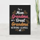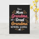 This card features a strong message centered on a deep black background, with the words arranged to spotlight family roles and a fearless attitude ❤️. Near the top, “I’m a” appears in small white lettering, leading into “Mom” in crisp white, “& Grandma” in a soft coral-pink, and “and a Great Grandma” in a warm golden orange. The color changes feel like a gentle progression through generations, like a proud family story told in layers. Below, “NOTHING SCARES ME” stands out in large white letters across the lower half, giving the layout a confident, protective energy. Curving golden flourishes sweep around parts of the wording, adding a tender, affectionate touch that softens the tough line. The text stays mostly centered, with the brighter words spaced out so each title gets its own moment, while the black space keeps everything sharp and easy to read 🌼. Thin golden swirls frame the composition with small curls near the corners and between the lines of text.