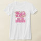 My overall review is that the T-shirt is nice, it fits true to size however the font is significantly smaller than advertised and you can't read it. The printing is unreadable and there is a strain to read it. It does not look like the advertised product. Maybe the shirt color is darker or a larger more visible font should have been used. Photos with and without flash and font is barely legible.