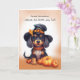 Sending 'Howl-oween' love to your great-grandson with this adorable card! Inside, a lovable black and brown dog, adorned with a funny witches hat, mingles with cheerful pumpkins. The soft watercolor wash background adds a touch of whimsy, and the fallen leaf on the hat enhances the card's cuteness. Celebrate the season with your great-grandson, making his first Halloween extra special!