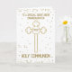 Digitally rendered gold looking gems and a cross is on the front of this beautiful card. Send this one to your great great granddaughter to congratulate her on her First Holy Communion.