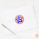 Patriotic big blue star on red stripes round sticker seals. "Great Job!" is in white stylish text. Or easily change the text to customize. Great award sticker for teachers, or use to advertise your business, or just delete the text and leave it out entirely for a blank big blue star.